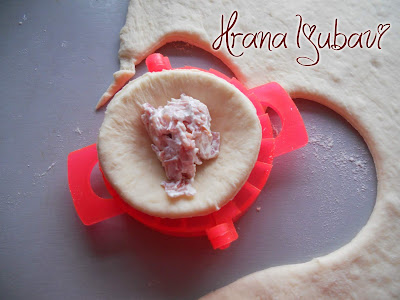 Suvi vrat i pečenicu iseckati na sitne kockice i sjediniti sa kiselom pavlakom.